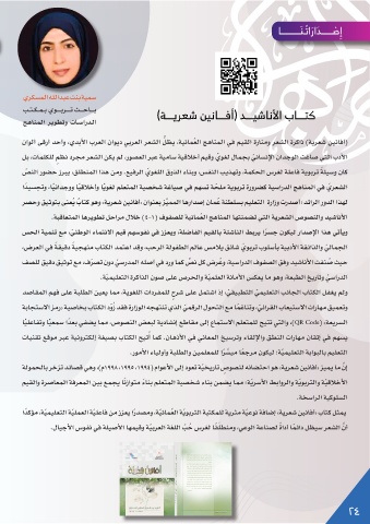 ا ً دكؤم ،ةيميلعتلا ةيلمعلا ةيلعاف نم زَزعي اًردصمو ،ةينام ُ علا ة�يوبرتلا ةبتكملل ةيرثًم ةيعون ةفاضِإ »ةيرعش نينافأ« باتك لثًمي