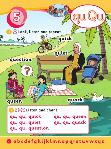5 qu Qu 1 5.1 Look, listen and repeat. quic quiet question queen quac 2 5.2 5.3 Listen and chant. qu, qu, quic qu, qu, queen qu, qu, quiet qu, qu, quac qu, qu, question abcde ghij lmnopqrstuvwxyz 8