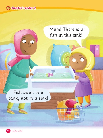 GR1.2 Graded reader 2 Mum! There is a ish in this sin ! Fish swim in a tan , not in a sin ! 98 ninety-eight 98