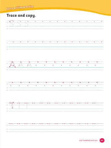 Extra writing practice Lesson 1 Lesson 1 Trace and copy. 1 1 3 S S S 2 4 1 2 3 4 1 1 2 3 A A A 2 3 4 1 2 3 4 2 1 1 3 T T T 2 4 1 2 3 4 one hundred and one 101