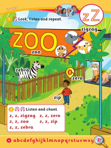 Lesson 2 z Z 1 6.7 Look, listen and repeat. zigzag zoo zebra zero zip 2 6.8 6.9 Listen and chant. z, z, zigzag z, z, zero z, z, zoo z, z, zip z, z, zebra z abcde ghij lmnopqrstuvwxy 36