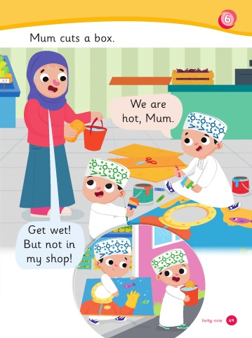 6 Mum cuts a box. We are hot, Mum. Get wet! But not in my shop! 49 forty-nine 49