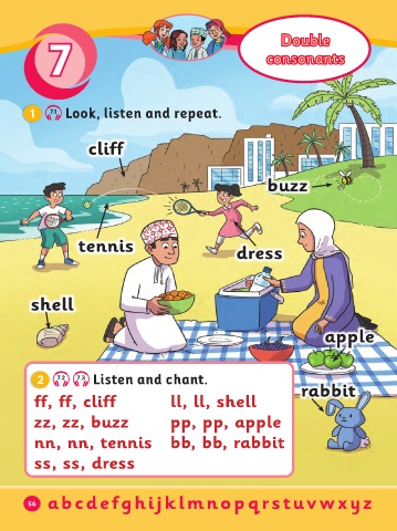 Double 7 consonants 1 7.1 Look, listen and repeat. cli buzz tennis dress shell apple 2 7.2 7.3 Listen and chant. rabbit , , cli ll, ll, shell zz, zz, buzz pp, pp, apple nn, nn, tennis bb, bb, rabbit ss, ss, dress abcde ghij lmnopqrstuvwxyz 56