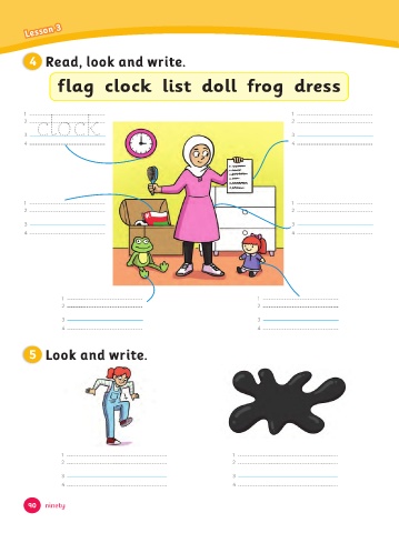 Lesson 3 4 Read, look and write. lag cloc list doll rog dress 1 1 cloc 2 2 3 3 4 4 1 1 2 2 3 3 4 4 1 1 2 2 3 3 4 4 5 Look and write. 1 1 2 2 3 3 4 4 90 ninety