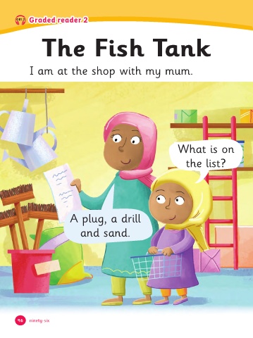GR1.2 Graded reader 2 The Fish Tan I am at the shop with my mum. What is on the list? A plug, a drill and sand. 96 96 ninety-six