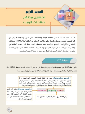 :ﻞﺜﻣ ،ﻪﻘﻴﺴﻨﺗ ﻲﻓ ﺐﻏﺮﻧ يﺬﻟا ﺮﺼﻨﻌﻟا selector {property: value}