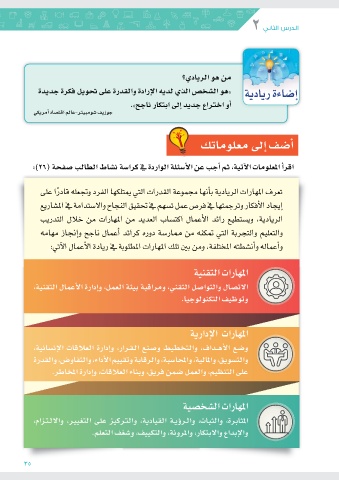 والتعليم والتجربة التي تمكنه من ممار�سة دوره كرائد �أعمال ناجح و�إنجاز مهامه