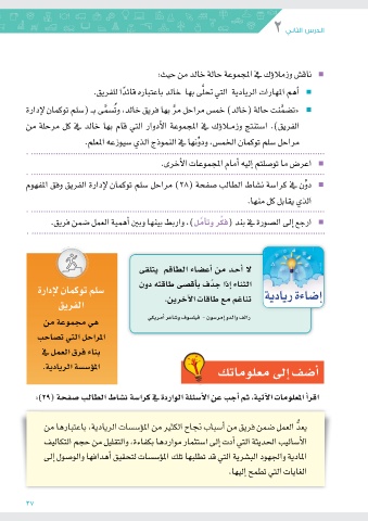 الفريق) .ا�ستنتج وزم�لا�ؤك في المجموعة الأدوار التي قام بها خالد في كل مرحلة من
