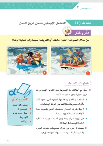 م�ستلزمات اللعبة: nط ِّبق مع زملائك في المجموعة لعبة التفاعل ا إليجابي في