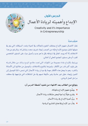 nيبينِّ أ�همية الإبداع في ريادة ا ألعمال.
