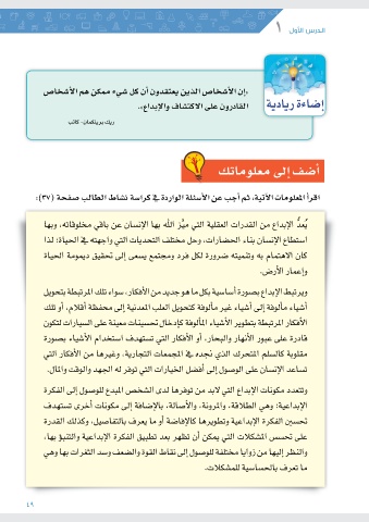 اقر أ� المعلومات الآتية ،ثم أ�جب عن ا أل�سئلة الواردة في كرا�سة ن�شاط الطالب �صفحة (:)37