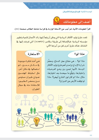 م�ؤ�س�سته الريادية ،فبالإ�ضافة �إلى طريقة �سكامبر ) (SCAMPERالتي تعرفت �إليها في