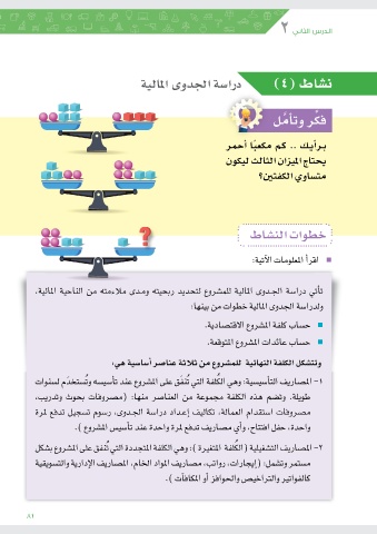 ت أ�تي درا�سة الج�دوى المالية للم�شروع لتحديد ربحيته وم�دى ملاءمته من الناحية المالية،