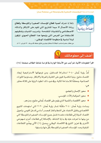 الوحدة الرابعة المؤسسات الصغيرة والمتوسطة في سلطنة عمان