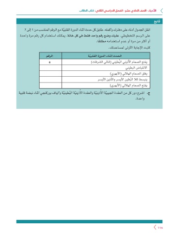 7 ىلإ 1 نم بسانملا مقرلا عم ةّيبلقلا ةرودلا ءانثأ ثدح لك قباط .هلمكأو كرتفد ىلع هاندأ لودجلا لقنا