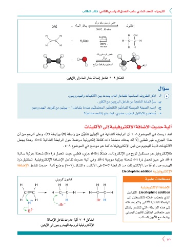 ةفاضلإا لعافت ثودح ةيلآ حضوي )7-٩( لكشلاو .نيكللأا يف C═C ةطبارلا نم تانورتكللإا نم ا ً جوز نيجورديهلا
