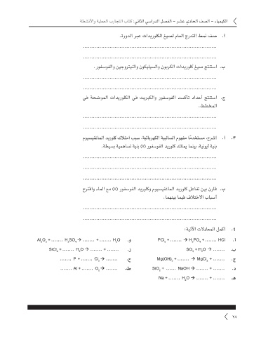 Al O + ....... H SO ....... + ....... H O .و PCl + ....... H PO + ....... HCl .أ
