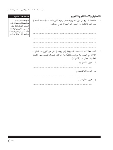 رصانعلا صئاصخ يف ةيرودلا ةسداسلا ةدحولا ةطشنلأاو ةيلمعلا براجتلا باتك :يناثلا يساردلا لصفلا - رشع يداحلا فصلا - ءايميكلا