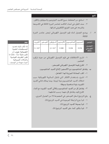رصانعلا صئاصخ يف ةيرودلا ةسداسلا ةدحولا ةطشنلأاو ةيلمعلا براجتلا باتك :يناثلا يساردلا لصفلا - رشع يداحلا فصلا - ءايميكلا