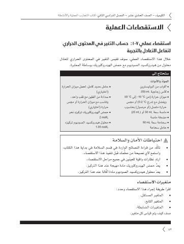 mL مويدوصلا ديسكورديه لولحم نم 50 mL فضأ ،ةصام ةخضمو ةصام مادختساب .٢ يرارحلا ىوتحملا يف ريغتلا باسح :١-٧ يلمع ءاصقتسا