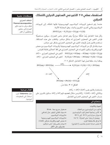 .زيكرتلا اذه دنع ةجّيهم ةدام كيرولكورديهلا ضمح ّدعُي ● .رثكأ وأ نيَتفلتخم 2KHCO (s) K CO (s) + CO (g) + H O(l)