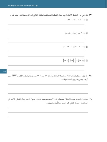 :نيَتيرشع نيَتلزنم برقأ ىلإ جتانلا اًبرقم ةميقتسملا ةعطقلا لوط د ِ جوأ ،ةيتلآا طاقنلا نم جوز لكل )٧:نيَتيرشع نيَتلزنم برقأ ىلإ جتانلا اًبرقم ةميقتسملا ةعطقلا لوط د ِ جوأ ،ةيتلآا طاقنلا نم جوز لكل )٧ طاشنلا باتك :يناثلا يساردلا لصفلا - رشع يداحلا فصلل ةمدقتملا تايضايرلاطاشنلا باتك :يناثلا يساردلا لصفلا - رشع يداحلا فصلل ةمدقتملا تايضايرلا