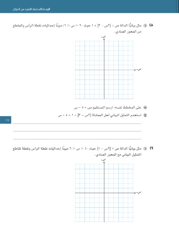 عطقملاو سأرلا ةطقن تايثادحإ اًنيبم ؛6 . س . 2- ثيح 1 + |3 - س2| = ص ةلادلا اًينايب لثم عطقملاو سأرلا ةطقن تايثادحإ اًنيبم ؛6 . س . 2- ثيح 1 + |3 - س2| = ص ةلادلا اًينايب لثم )8 )8 |2 - س|3 = ص |2 - س|3 = ص طاشنلا باتك :يناثلا يساردلا لصفلا - رشع يداحلا فصلل ةمدقتملا تايضايرلاطاشنلا باتك :يناثلا يساردلا لصفلا - رشع يداحلا فصلل ةمدقتملا تايضايرلا