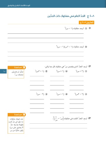 65 65 ن ّ مضتت نأ رّكذت ن ّ مضتت نأ رّكذت 6 6 )س٣ + ١( )س٣ + ١( ٨٨ )س + 6( )س + 6( ٥٥ )س + ٣( )س + ٣( . ). ) ٤٤ + ١) كوكفم يف س ىوق بسحب اًيدعاصت ةبّترم دودح ةعبرأ لوأ د ِ جوأ )٦) كوكفم يف س ىوق بسحب اًيدعاصت ةبّترم دودح ةعبرأ لوأ د ِ جوأ )٦ 64 64