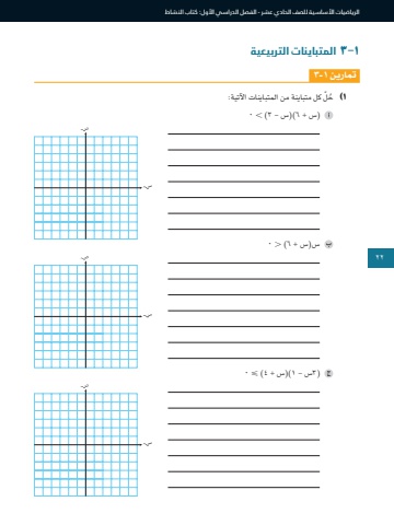 الرياضيات األساسية للصف الحادي عشر - الفصل الدراسي األول: كتاب النشاط22 1-٣ المتباينات التربيعيةتمارين ١-٣1ُ )ح ّل كل متباينة من المتباينات اآلتية:)س + 6()س - 3 , )0 س)س + 6 . )0)3س - 1()س + 4 > )022