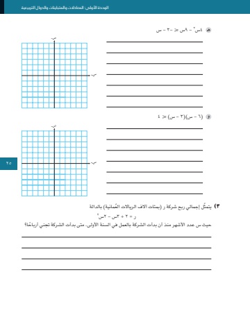 الوحدة األولى: المعادالت والمتباينات والدوال التربيعية252 - 9س > -3 - س 4س)6 - س()3 - س( > 4٣ ّ )يتمث ُ ل إجمالي ربح شركة ر )بمئات آالف الرياالت العمانية( بالدالة 2ر = 2 + 3س - 2سحيث س عدد األشهر منذ أ ً ن بدأت الشركة بالعمل في السنة األولى. متى بدأت الشركة تجني أرباحا؟25
