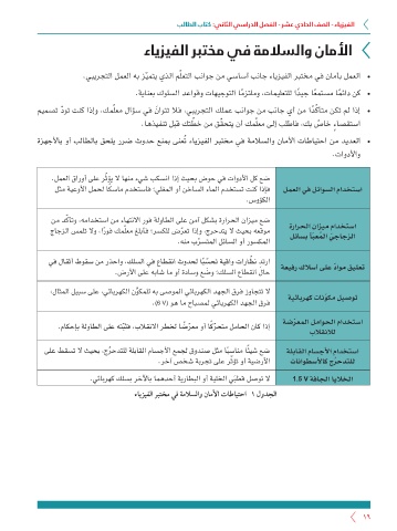 ءايزيفلا ربتخم يف ةملاسلاو ناملأا تاطايتحا ١ لودجلا