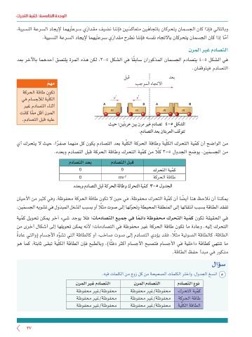 .هدعبو مداصتلا لبق ةكرحلا ةقاطو كرحتلا ةيمك نم ً لاك 3-5 لودجلا حضوي .نيَمسجلا نم