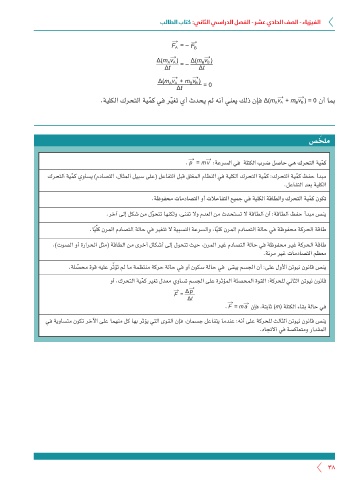 .ةيلكلا كرحتلا ةيمك يف رّيغت يأ ثدحي مل هنأ ينعي كلذ نإف Δ(m v + m v ) = 0 نأ امب