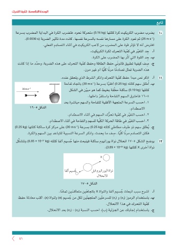 (0.25 kg) اهتلتك ةنكاس ةرك زكرم ىلع (30 m s ) ةعرسب (0.25 kg) هتلتك يطاطم فرط وذ مهس قلطُي .ج