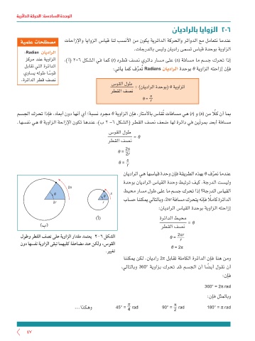 :يتأي امك فرعُت Radians نايدارلا ةدحوب θ ةيوازلا هتحازإ نإف