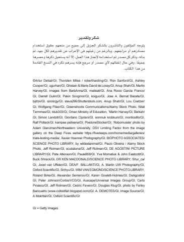 شكر وتقديريتوجه المؤلفون والناشرون بالشكر الجزيل إلى جميع من منحهم حقوق استخدام مصادرهم أو مراجعهم. وبالرغم من رغبتهم فى اإلعراب عن تقديرهم لكل جهد تم بذله، وذكر كل مصدر تم استخدامه إلنجاز هذا العمل، إال أنه يستحيل ذكرها وحصرها ً جميعا. وفي حال إغفالهم ألي مصدر أو مرجع فإنه يسرهم ذكره في النسخ القادمة من هذا الكتاب.©Artur Debat/GI, Thorsten Milse / robertharding/GI, Ron Sanford/GI, AshleyCooper/GI, ugurhan/GI, Ghislain & Marie David de Lossy/GI, Anup Shah/GI, MartinHarvey/GI, Images from BarbAnna/GI, maiteali/GI, Ana Rocio Garcia Franco/GI, Darrell Gulin/GI, Pakin Songmor/GI, koiguo/GI, Jose A. Bernat Bacete/GI,bjdlzx/GI, sinology/GI, slava296/Shutterstock.com, Anup Shah/GI, Lou Coetzer/GI, Wolfgang Filser/GI, Greenshoots Communications/Alamy Stock Photo, NitatTermmee/GI, tdub303/GI, Oman Ministry of Education, ˆMartin Harvey/GI, Berkah/GI, Simon Landolt/GI, Giordano Cipriani/GI, somnuk krobkum/GI, monticelllo/GI,Ralf Pollack/GI, kampee patisena/GI, PixeloneStocker/GI, ‘Robomussle’ photo byAdam Glanzman/Northeastern University, DSV Limiting Factor from the imagegallery on the Deep Fives website https://fivedeeps.com/home/media/galleries/trials-testing-media/, Xavier Hoenner Photography/GI, BIOPHOTO ASSOCIATES/SCIENCE PHOTO LIBRARY, by wildestanimal/GI, Paulo Oliveira / Alamy StockPhoto, Jeff Rotman/GI, scubaluna/GI, Jeff Rotman/GI, DE AGOSTINI PICTURELIBRARY/GI, Pete Atkinson/GI, Paule858/GI, Yva Momatiuk & John Eastcott/GI,Buck Shreck/GI, DR KEN MACDONALD/SCIENCE PHOTO LIBRARY, Shur_ca/GI, Joost van Uffelen/GI, DEA/F. BALLANTI/GI, A. Martin UW Photography/GI,Oxford Scientific/GI, Sinhyu/GI, WIM VAN EGMOND/SCIENCE PHOTO LIBRARY,Roland Birke/GI, Alexander Semenov/GI, Karen Gowlett-Holmes/GI, DeAgostini/GI, Peter Johnson/Corbis/VCG/GI, Auscape/Universal Images Group/GI, CarloPinasco/GI, Jeff Rotman/GI, Cedric Favero/GI, Douglas Klug/GI, photo by FarleyBaricuatro (www.colloidfarl.blogspot.com)/GI, A. DEMOTES/GI, Image Source/GI,A Mokhtari/GI, Oxford Scientific/GIGI = Getty Images