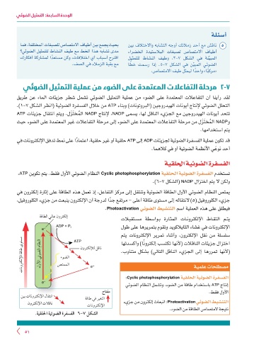 .)1-٧ لكشلا رظنا( ةيئوضلا ةرفسفلا للاخ نم ATP ءانبو )تانوتوربلا( نيجورديهلا تانويأ جاتنلإ يئوضلا للحتلا