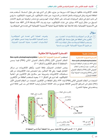 تانورتكللإا ةقاط ىوتسم )II( يناثلا يئوضلا ماظنلا ATP )I( لولأا يئوضلا ماظنلا e H + دسكؤم NADP