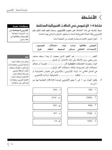 ذإ( ةعفترم يبورتنإ ةيزاغلا نم اهب ةصاخلا )J/K.mol ةدحوب( يبورتنلإا ميقب ٥ ىلإ ١ نم داوملا قباط .٢