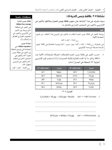 لعجل 1000 يف )kJ/mol ةدحوب( ∆H r برض بجي ،∆G = ∆H r T∆S ⦵ ةلداعملا يف