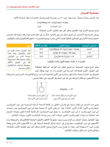 .لوناثيلإاو ءاملاو لونيفلل pK ميق )5-8( لودجلا حضوي .)رشع يناثلا فصلا ةيئاملا ليلاحملا يف نازتلاا ةدحو( فعضأ