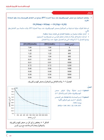 0.40 [HCl] = 1.84 ،1.45 ،1.22 ،1.04 ،0.91