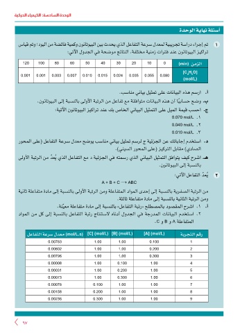 لعافتلا ةعرس لدعم (mol/L.s) [C] (mol/L) [B] (mol/L) [A] (mol/L) ةبرجتلا مقر
