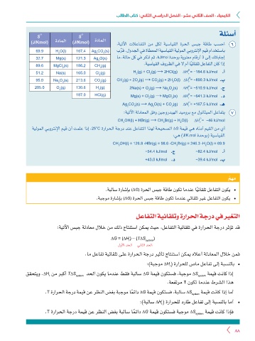 )J/Kmol( ةداملا )J/Kmol( ،ةيتلآا تلاعافتلا نم لكل ةيسايقلا ةرحلا سبج ةقاط بسحا 6