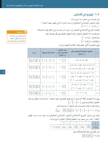 ذختي وهف اذل ،تاحاجنلا ب فقوتي نأ لامتحا دجوأف ،تارم ١0 صرقلا رّوُد اذإ يذ عيزوت يف دودحلا تلاامتحلاا انيدل نوكتو ،}3 ،2 ،١ ،0{ ∈ س نإف ،)ب ،3( ث س رّيغتملا ناك اذإ : ً لاثمف ) ( ) () ( × × × ٤ )6 ،6 ،6 ،6( 4 .Mathematical model