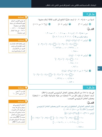 نم اًبلاط ١8 نوكي نأ لامتحا ،ةيرشع لزانم ثلاث برقأ ىلإ جتانلا اًبرقم ،دجوأ 0.2٥٤ -١ = عمجن اذل ،نايفانتم ناثدحلا )0.3( × )0.7( × ) ( + )0.3( × )0.7( × ) ( = للاخ نم ب ةميق ددحتت ر - ن )ب - ١( ب ) ( = )ر( وه تاحاجنلا نم ر لامتحا نإف ،)ب ، ن( ث ∼ س ناك اذإ