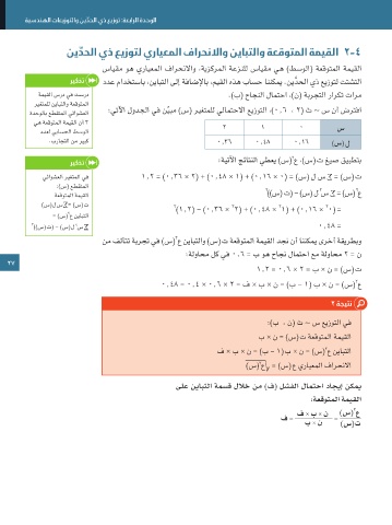 )س( ع د ))س( ت س( ج )ب - ١( ب ن = )س( ع ب يئاوشعلا ريغتملا يف ١.2 = )0.36 × 2( + )0.٤8 × ١( + )0.١6 × 0( = )س( ل س = )س( ت