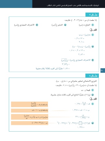 :بسحاف ،)0.2٥ ، 8( ث ∼ س :نأ تملع اذإ )٢ 0.3 × ١2 = .براجتلا نم ريبك 0.36 0.٤8 0.١6 )س(