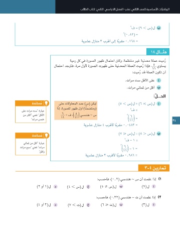 35 34 33 )3 س( ـل ةقيقدلا ةميقلا دجوأف ، 8١٩ = )3 س( ،)ب( يسدنه ∼ س نأ تملع اذإ 0.88٤ = 32