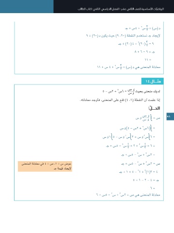 )1٠٠ ،٣( ل ؛ 1 - س 8 + س٦ = ص د )٤ ،1-( ل ؛ س٢ - س٦ = ص ج ىنحنملا ةلداعم يف ٤ = ص ،1 = س ضوع ـج + س5 - س + س٢ = ص .هتلداعم دجوأف ،)9 ،٢-( ةطقنلاب رمي )س( د = ص ىنحنملا نأ تملع اذإ